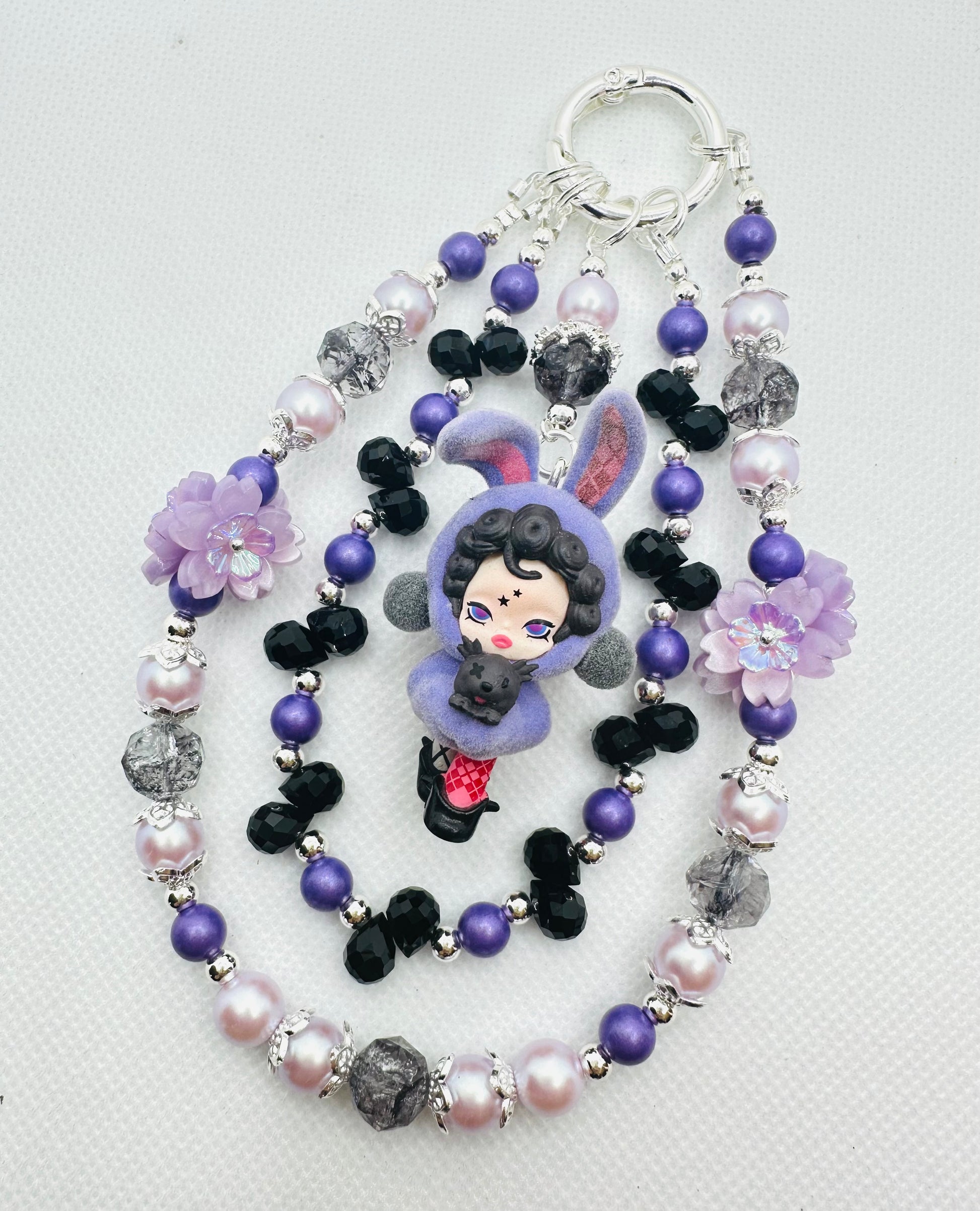 Made with a diy figure, this charm has acrylic, glass and metal beads.